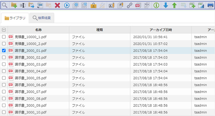 他システムから出⼒される⽂書ファイルや、作成した⽂書ファイルを⾃動的に保管できます。