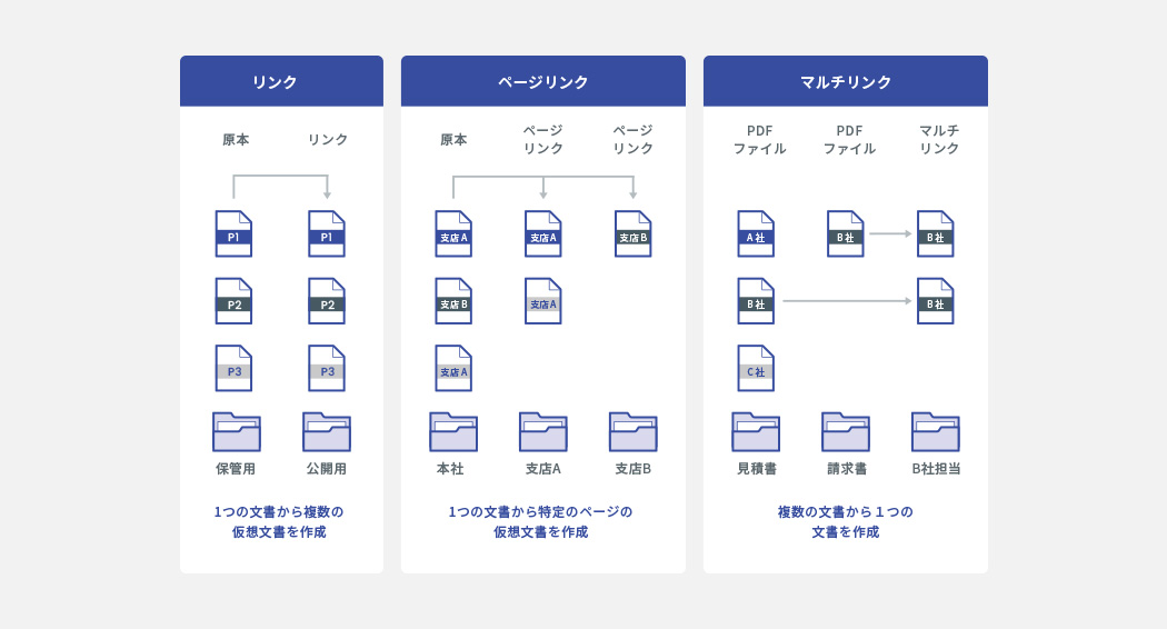 原本のPDFに⼿を加えることなく、仮想PDF(SVF Archiver上のショートカット)として⽂書を扱うことができます。