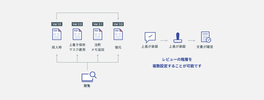 ⽂書の版管理・複数階層レビュー