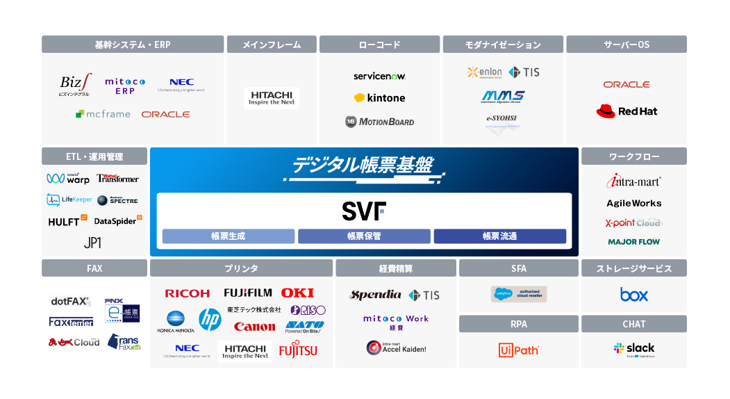SVFは、長年にわたり主要なERP、SFA/CRM、ワークフローシステム等との連携し、企業の帳票運用を最適化してきました。