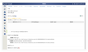 SVF Cloud Managerでは、出力環境(本番組織・Sandbox組織)ごとに、SVF Cloudの情報を管理することが可能です。