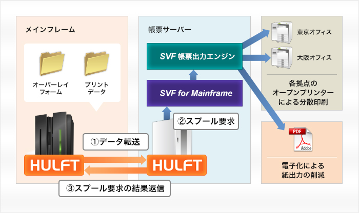 HULFTを利用することでFTP送信ではできない、SVFに対する印刷要求の正常完了をメインフレーム側で把握できます。