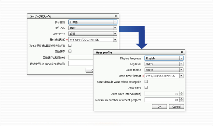 いつでも、ログインユーザー自身が UI 表示言語を日本語、英語、簡体字から選択し変更できます。