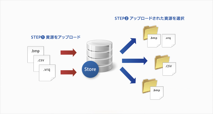 サーバーにアップロードされた周辺ファイル(画像、印刷時に使用するテストデータなど)を、選択して利用します。