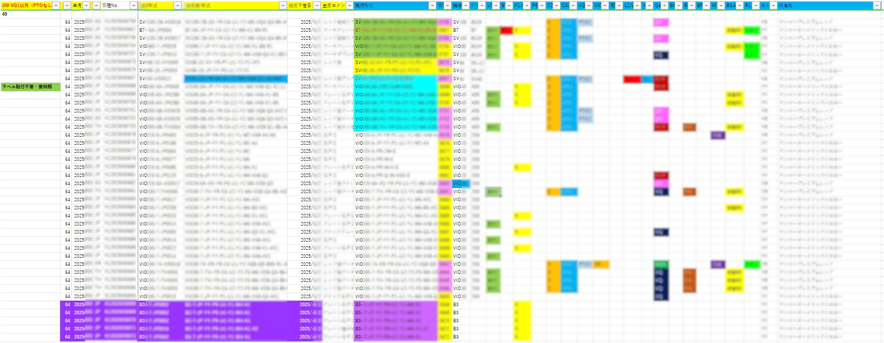 具体的には、Excelシートを用いて機体ごとの仕様に色を付して色彩で判別し、その都度手作業でコピー&ペーストを繰り返して、順序を入れ替えるなどの作業を行っていた。この作業には、熟練者である古賀氏をもってしても毎日5~6時間以上の作業時間を要していたという。さらに、今後も製品の多様化、仕様の増加が予測されるなかでは、人手による計画策定は限界に達していた。