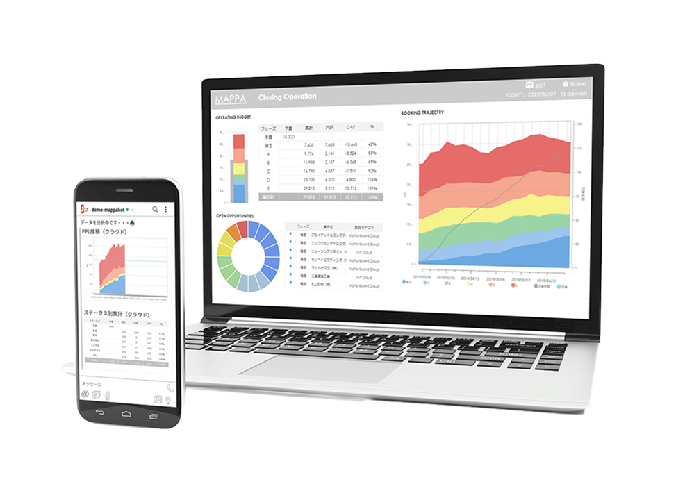 - 予算に対しての実績管理や予算達成率、案件進捗を確認